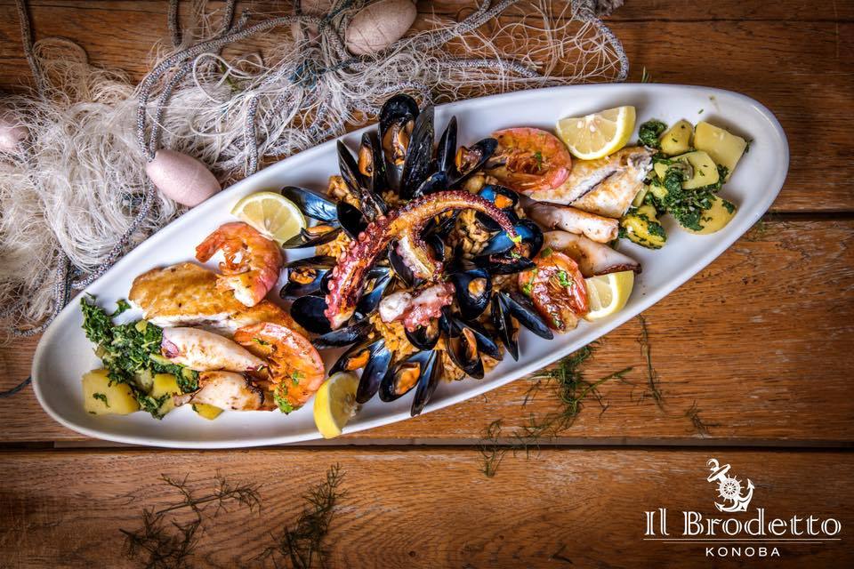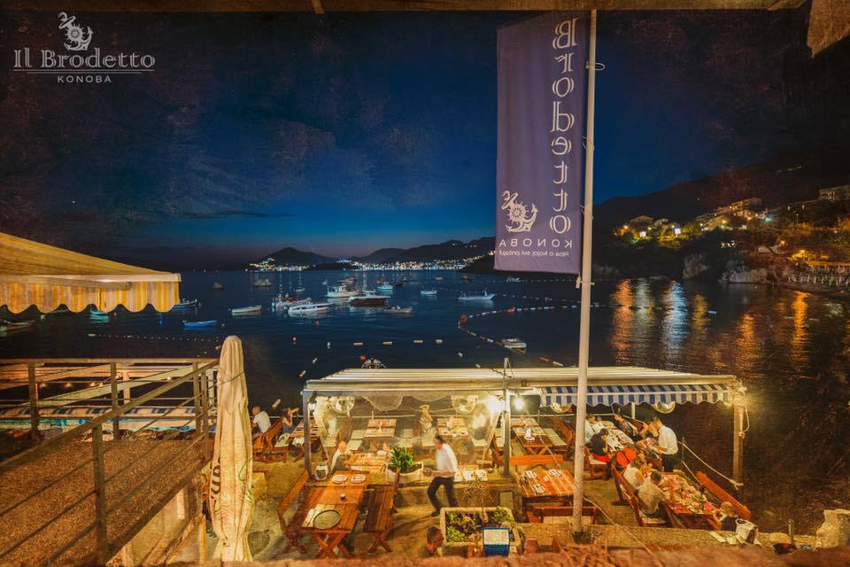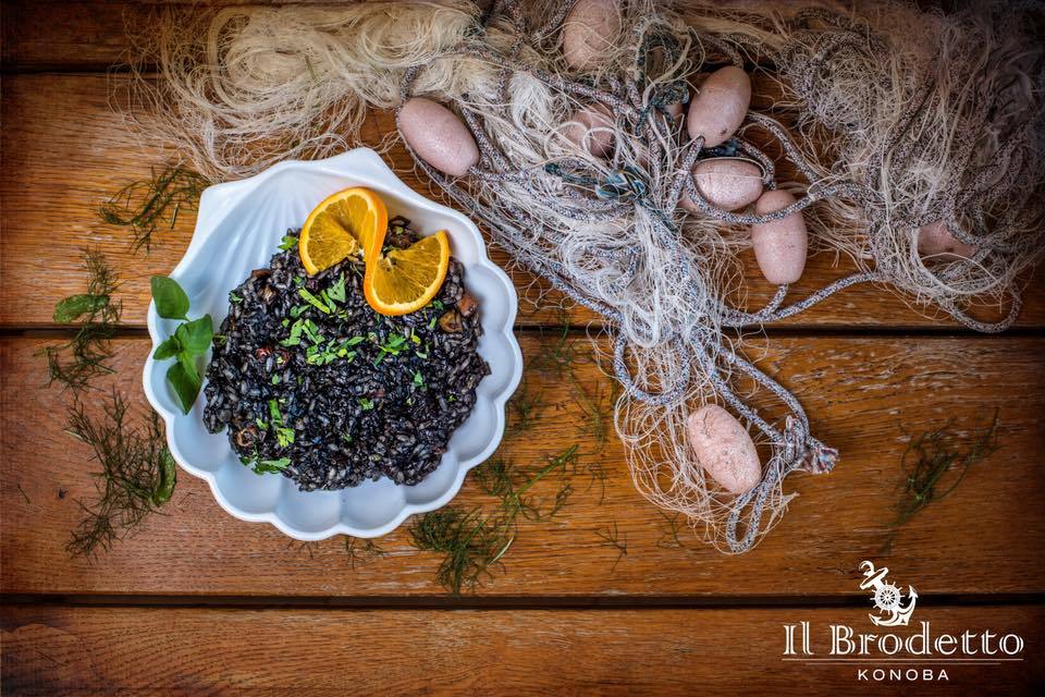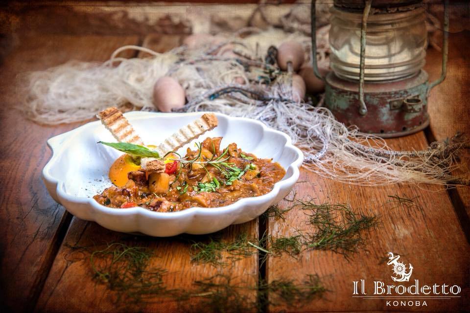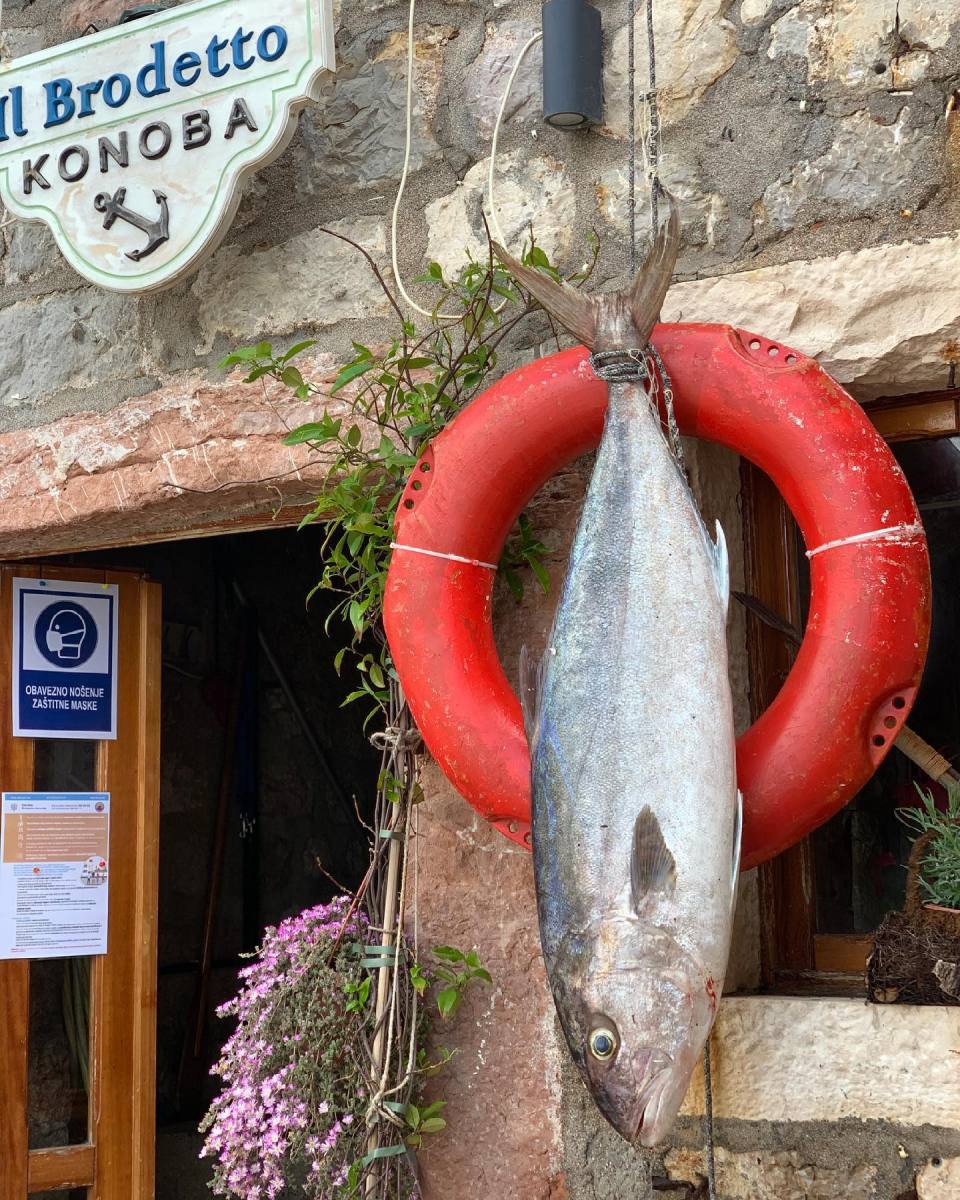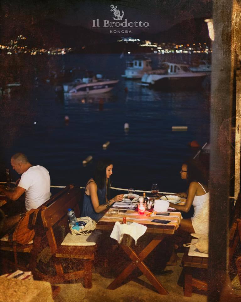 Ресторан IL Brodetto Pržno — это элегантное, но неформальное место с деревянной атмосферой и характерными для рыбалки деталями.
