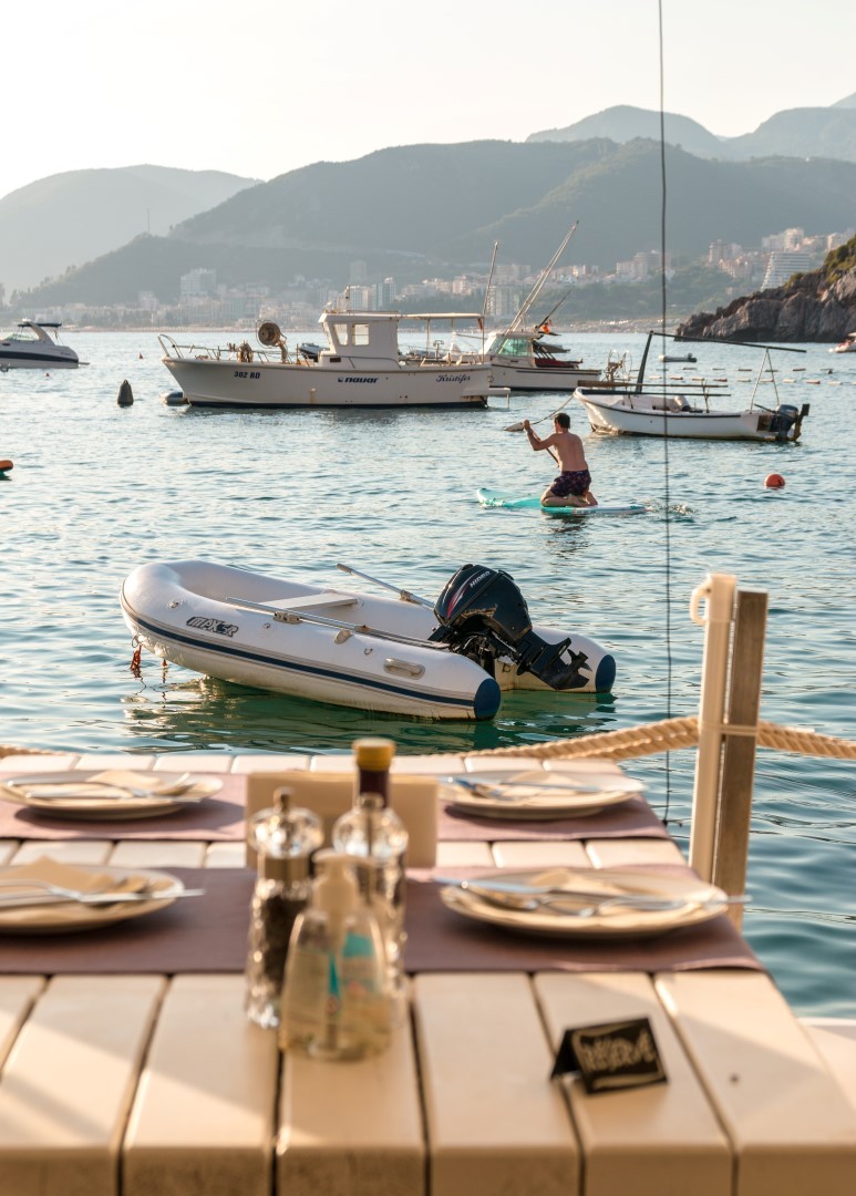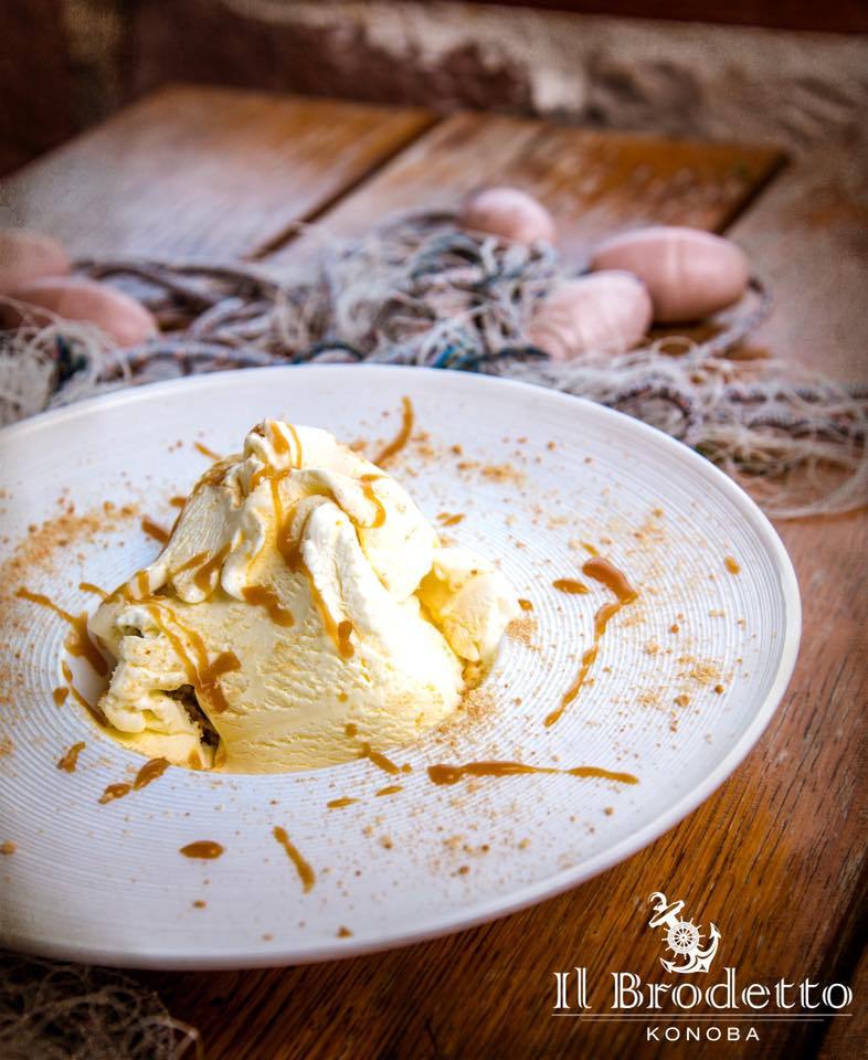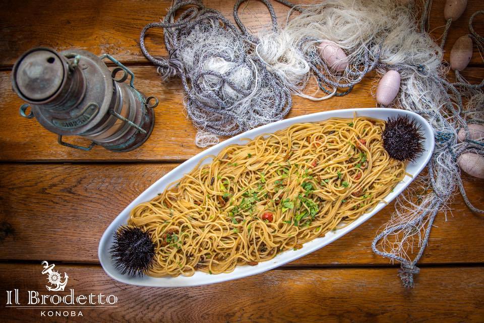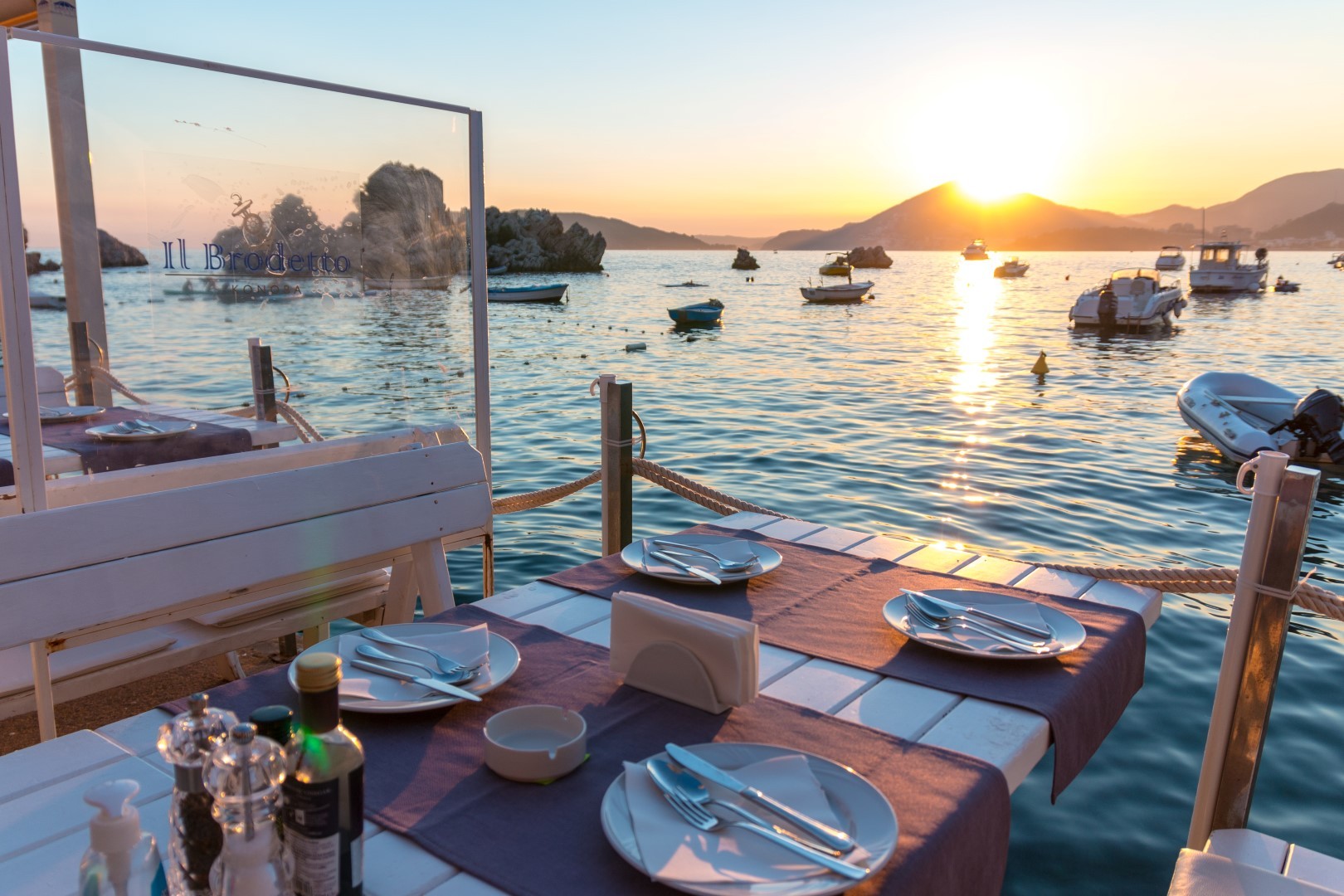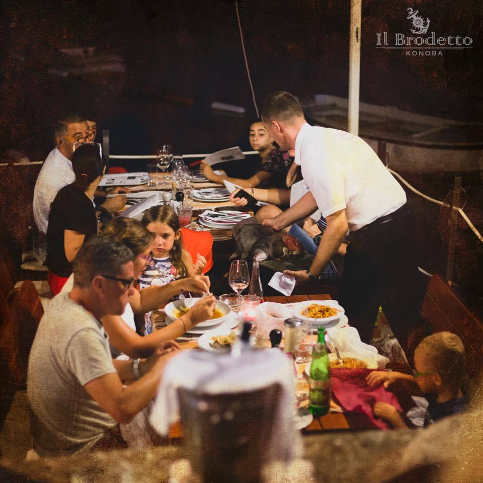 Ресторан IL Brodetto Pržno — это элегантное, но неформальное место с деревянной атмосферой и характерными для рыбалки деталями.
